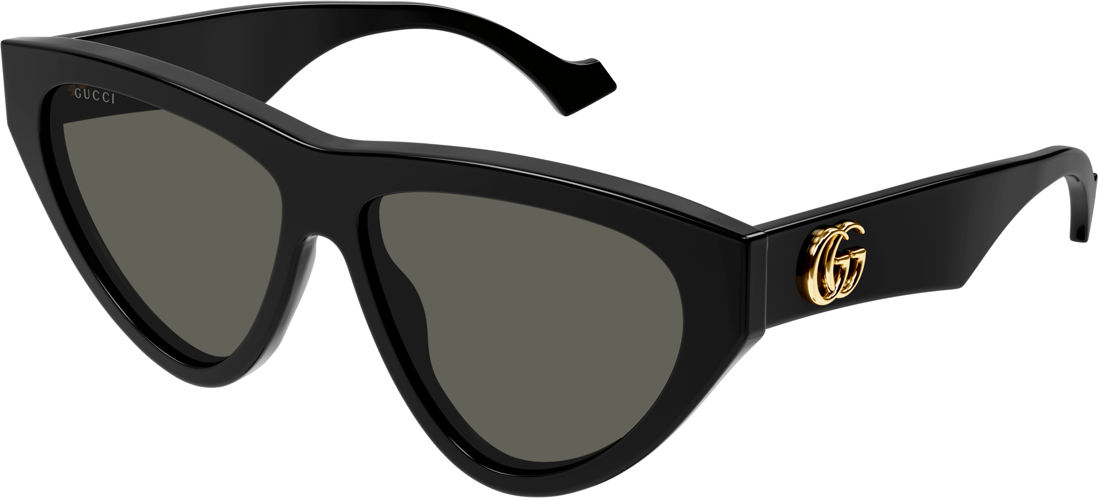 Cat-eye shape. Gucci running logo on temples. Bold volumes and strong personality. Concept for a street style effortless look, cool and on-trend.