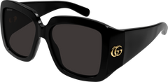 For a modern and feminine look the GG Corner concept is embellished by multifaceted injected construction that makes it unique and timeless. Squared oversize feminine shape in bold acetate. Gucci running logo on the side view. The color palette includes commercial feminine and timeless shades with on top an ivory sku.