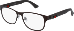 Experience sophistication and style with the Gucci Optical GG0013O sunglasses. Crafted for a younger clientele, these sporty chic sunglasses feature a stainless steel frontal design paired with a metal front and rubber co-injected temples. The iconic web grosgrain insert, inspired by Gucci men's accessories, adds a touch of luxury.