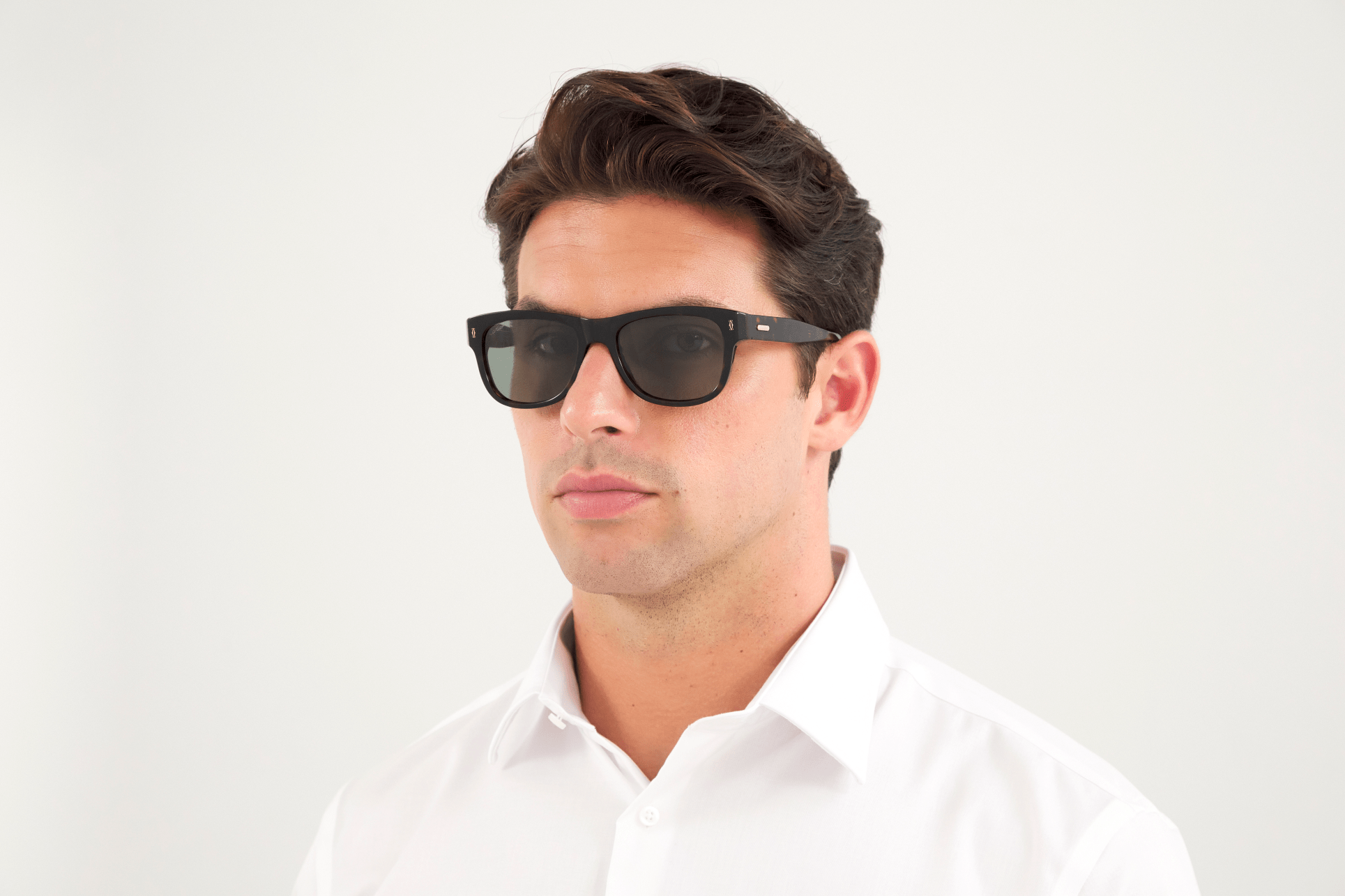 A bold acetate frame in sleek black makes a powerful style statement. The meticulous attention to detail—from the engraved logos to the crystal-effect temples—ensures these sunglasses stand apart as a symbol of refined luxury.