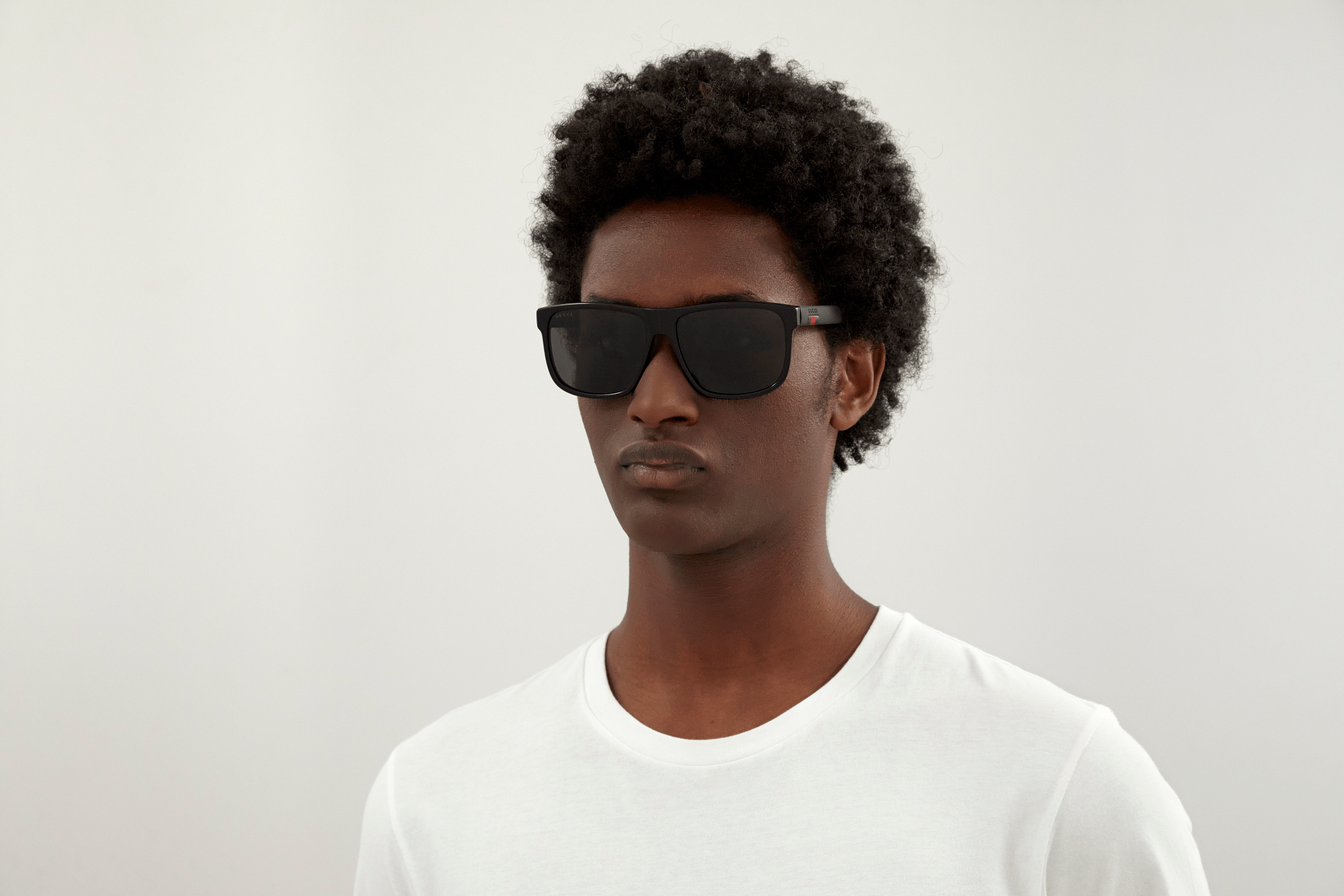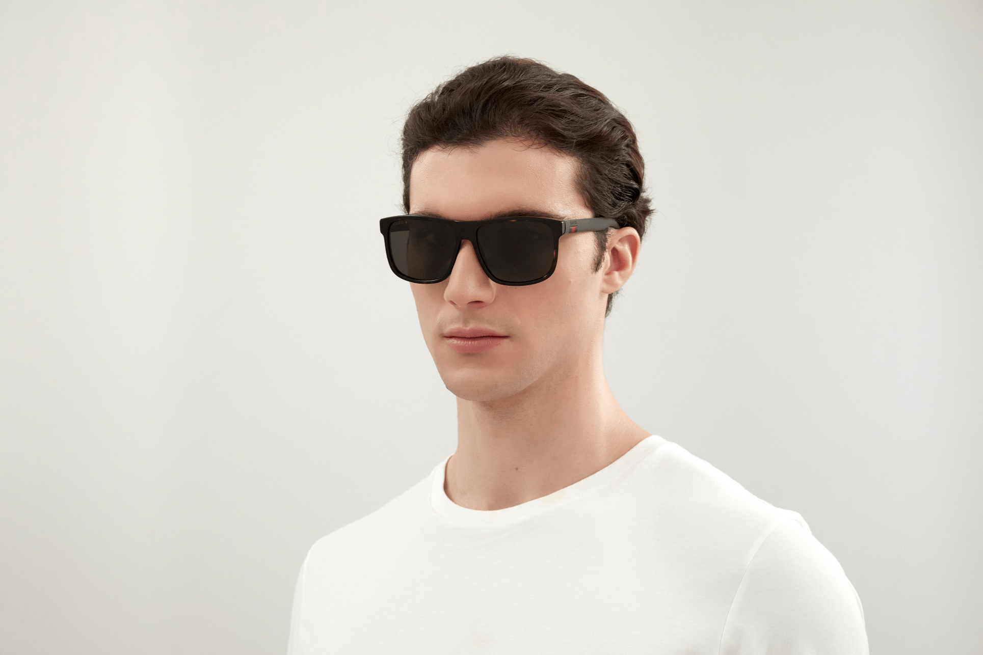 Acetate front with rubber co-injected temple, characterized by the web gros grain insert that takes inspiration from Gucci man accessories