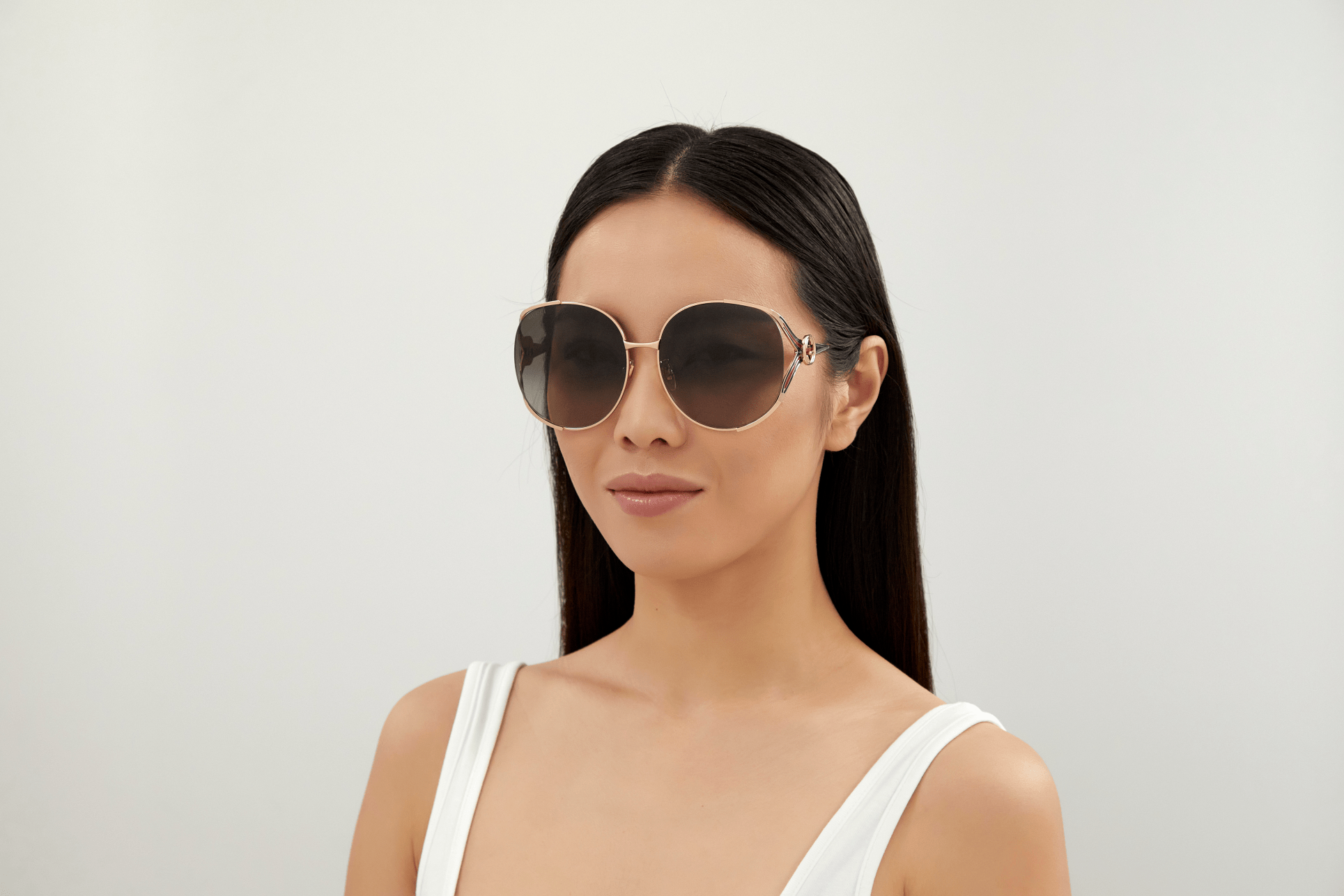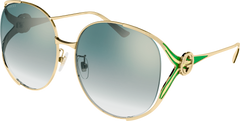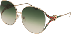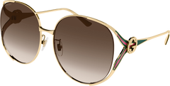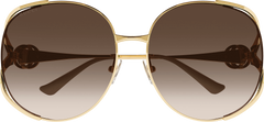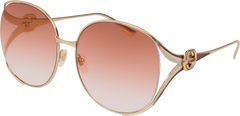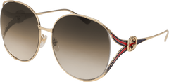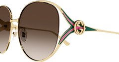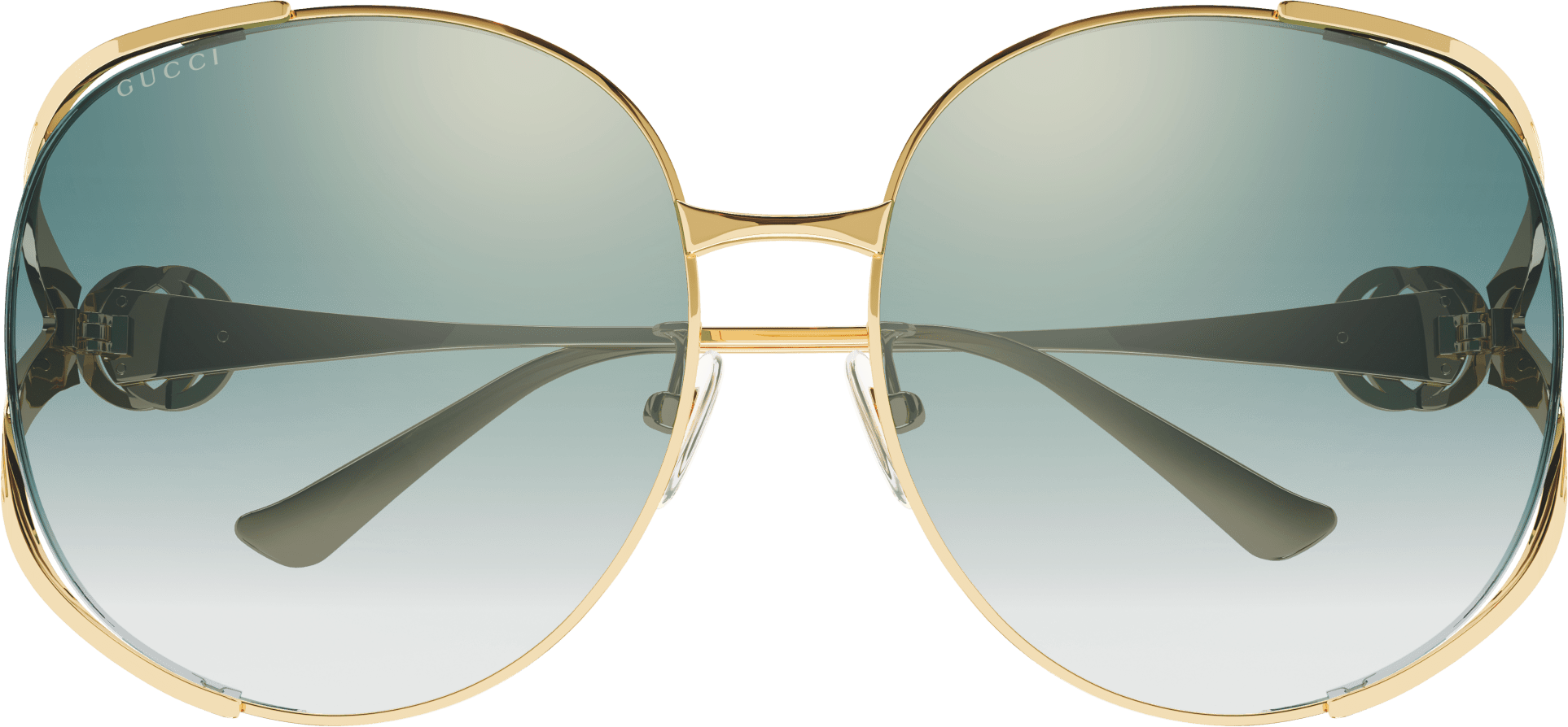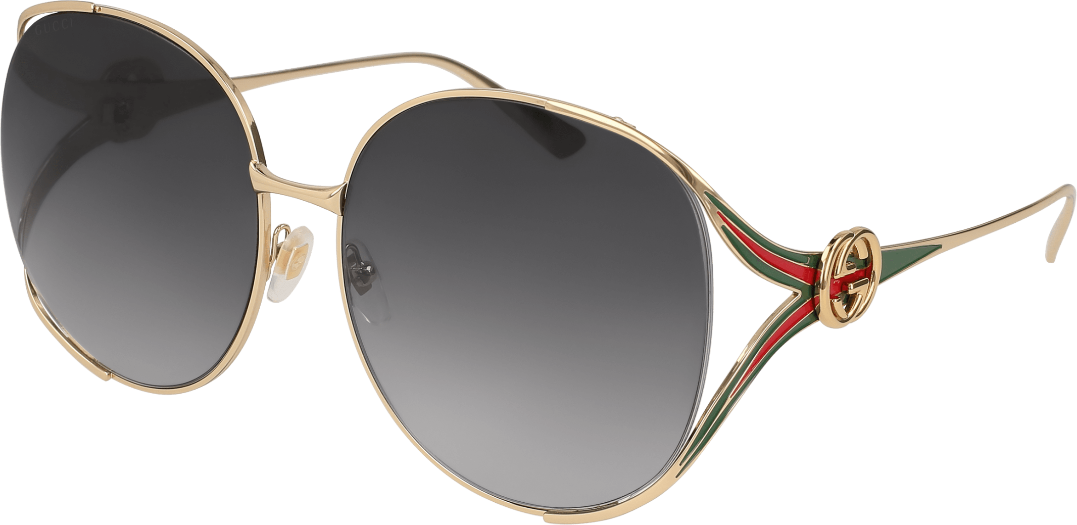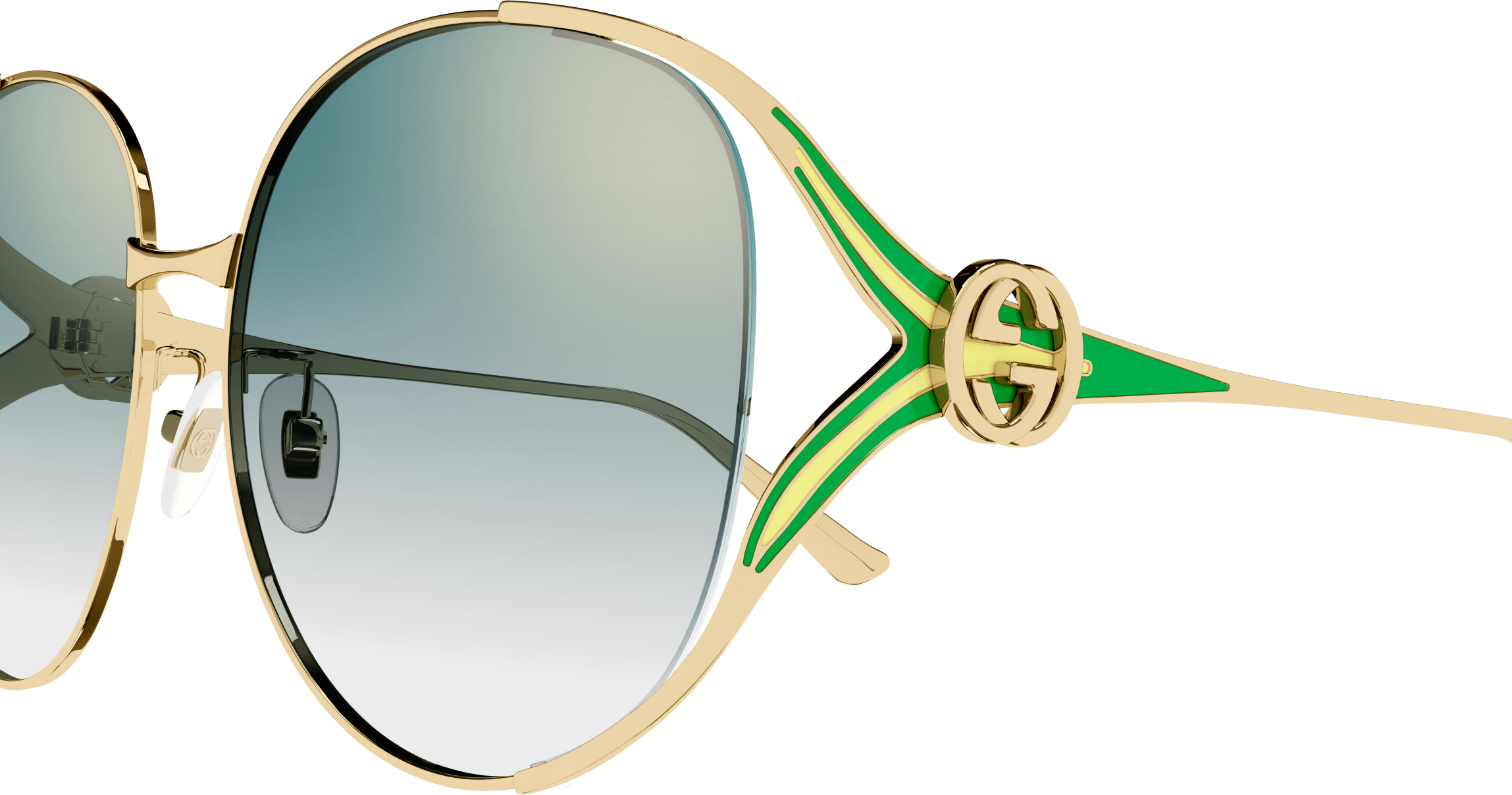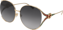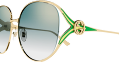 Full metal oversize round shape. Acetate front paired with metal temples with the iconic fork hinge and the GG interlocking logo on both temples. The SKUs are enriched with enamel details recalling the institutional Gucci web.