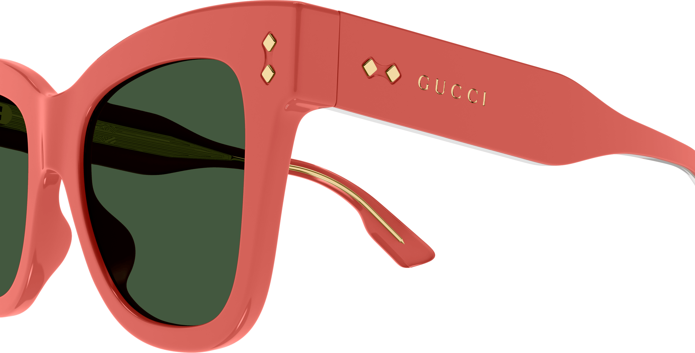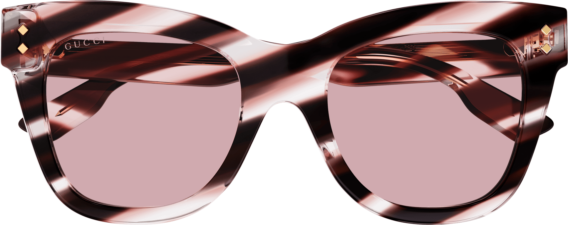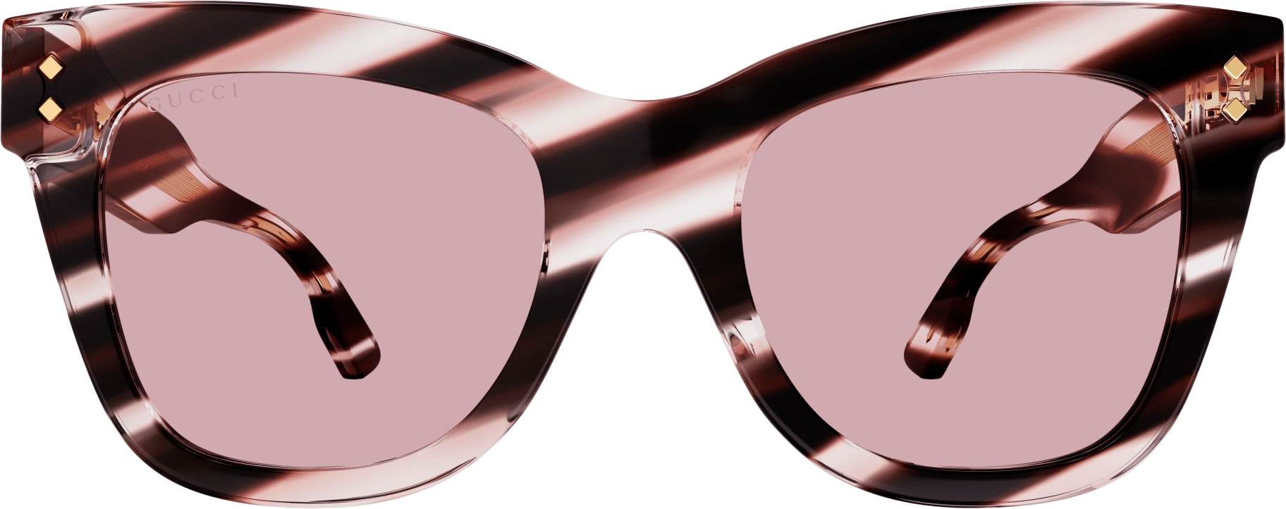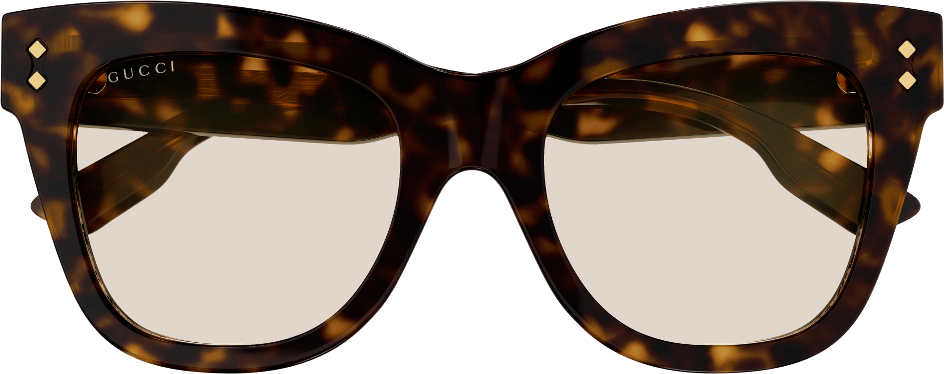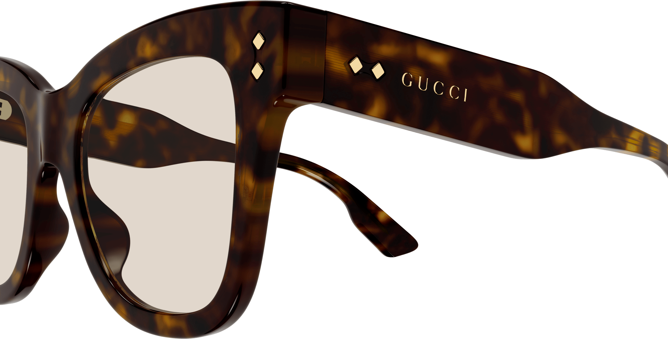 Close your eyes and drift back in time…you’re in Piazza del Popolo in Rome, it’s the mid-50s. There’s a golden light; Marcello, an aspiring novelist is taking a stroll and out of nowhere Maddalena appears in a shiny car and dives into the scene…. This cat-eye style is characterized by a bold volume and texture, enriched by iconic metal rivets glisten on front and temples. The style is enriched by unique havanas and by a distinctive metal wirecore and Gucci lettering logo on both temples.