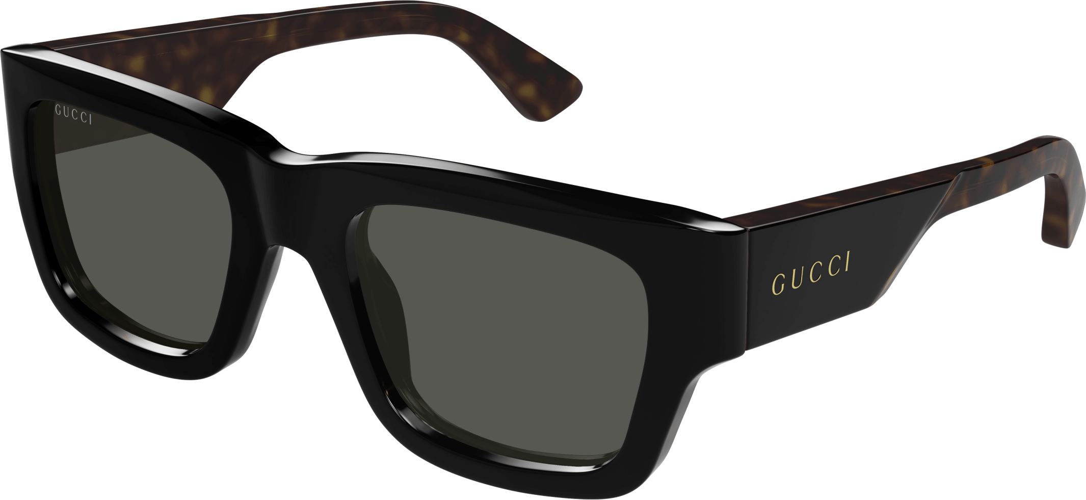 Acetate styles with Bilayer temple colored to recall the iconic Web Detail. Wayfarer shape. Gucci Lettering logo on temples. Commercial yet cool color palette featuring at least two color combinations.