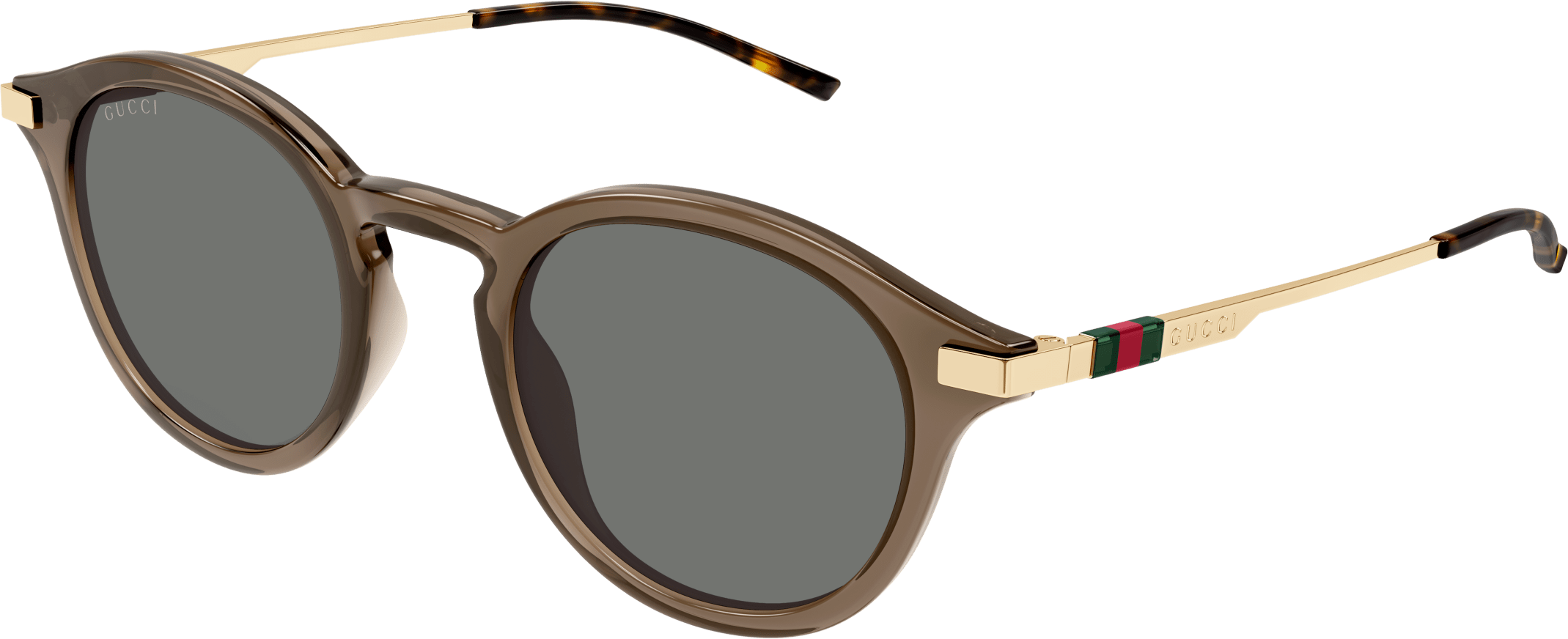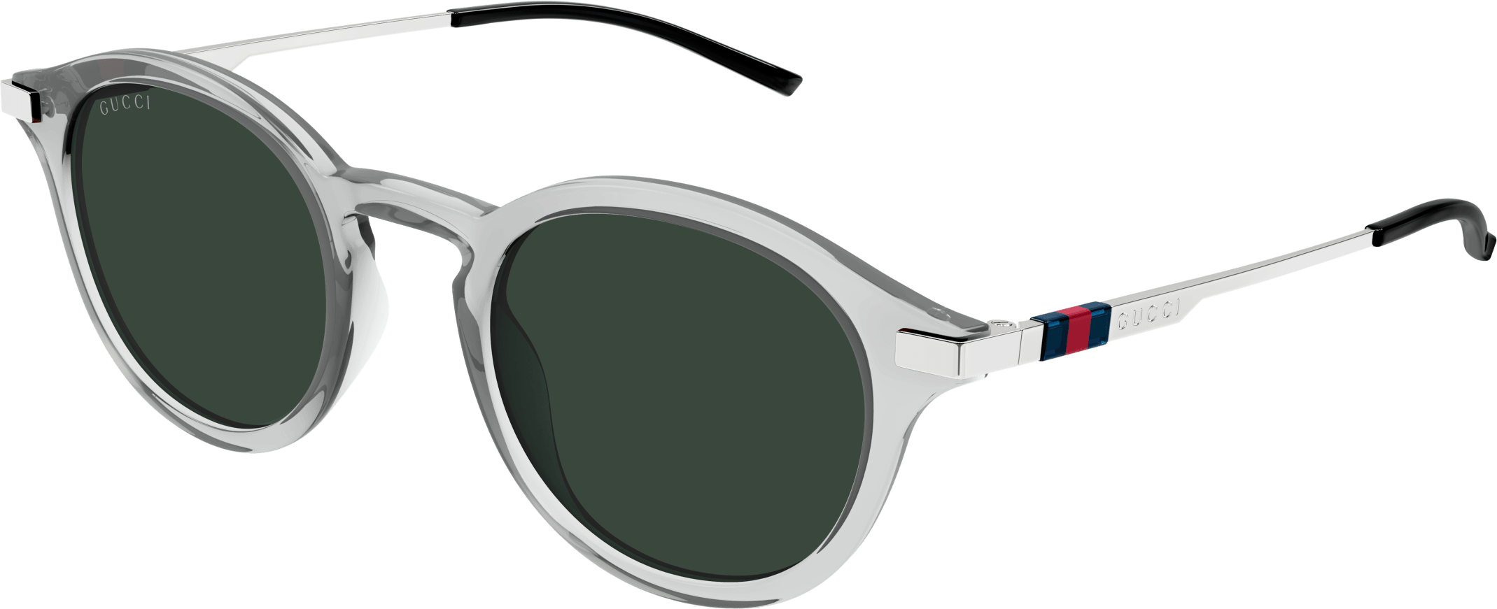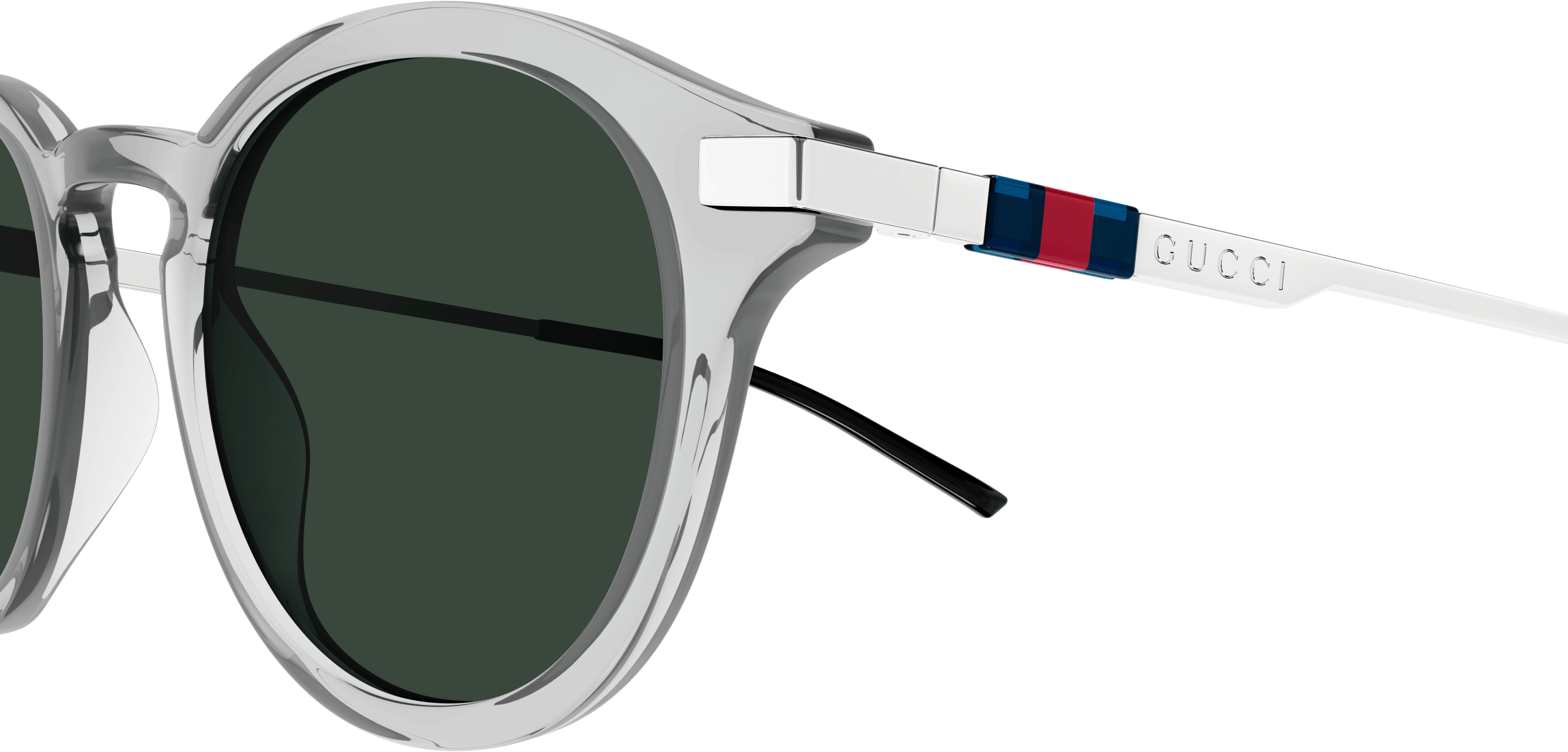 Carry over concept introduced in a combi development. Rounded shape. Gucci lettering logo on temple and web detail. Commercial and elegant masculine colors paired with solid cool lenses.