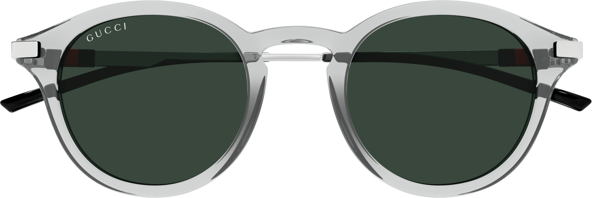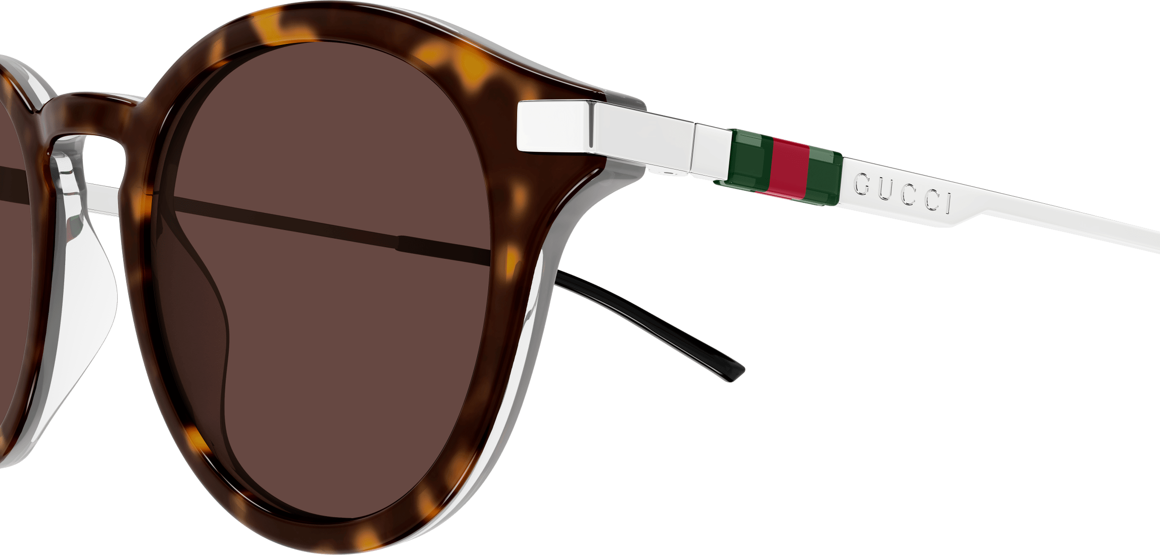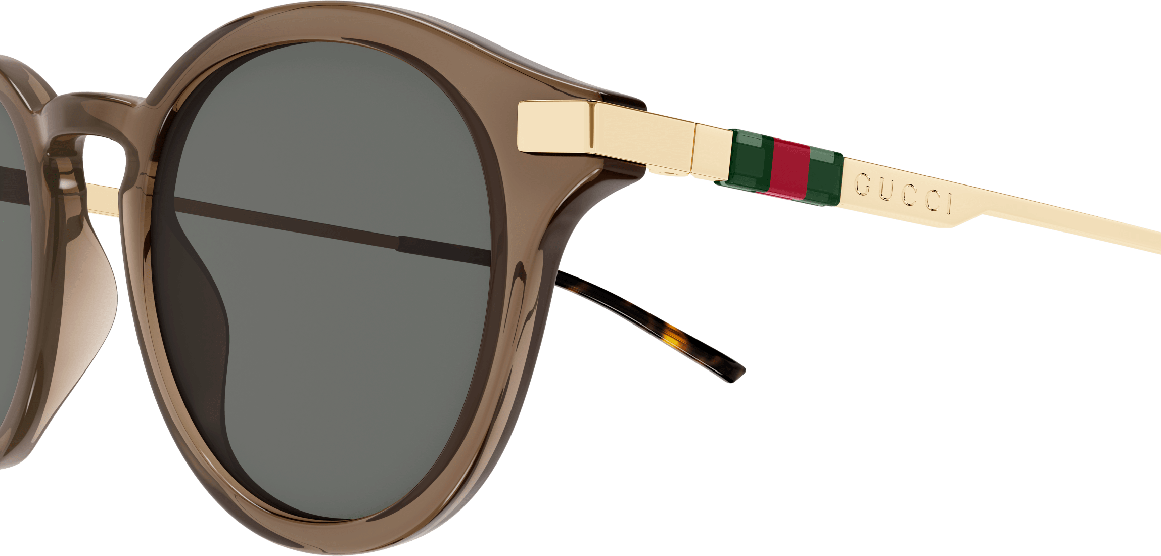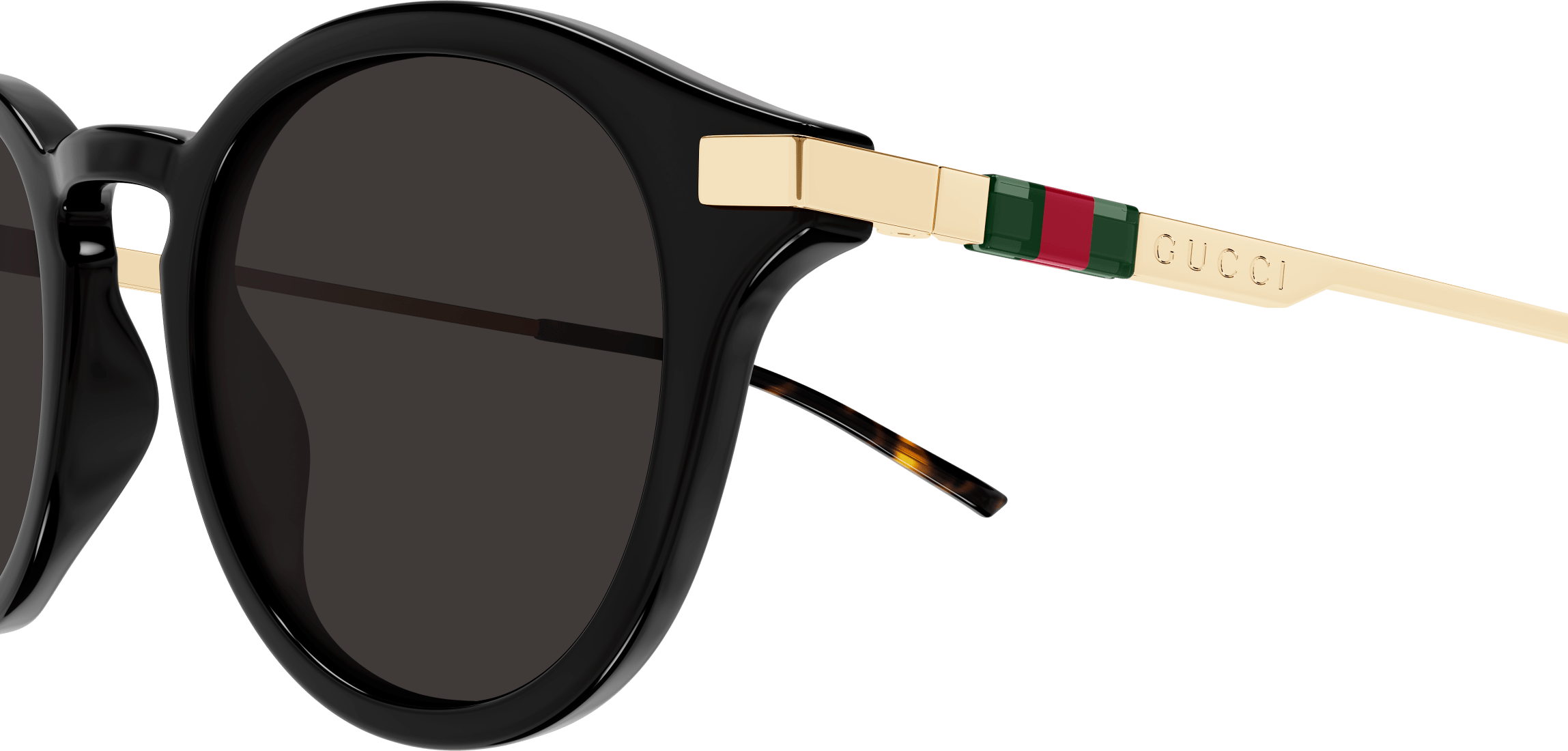 Carry over concept introduced in a combi development. Rounded shape. Gucci lettering logo on temple and web detail. Commercial and elegant masculine colors paired with solid cool lenses.