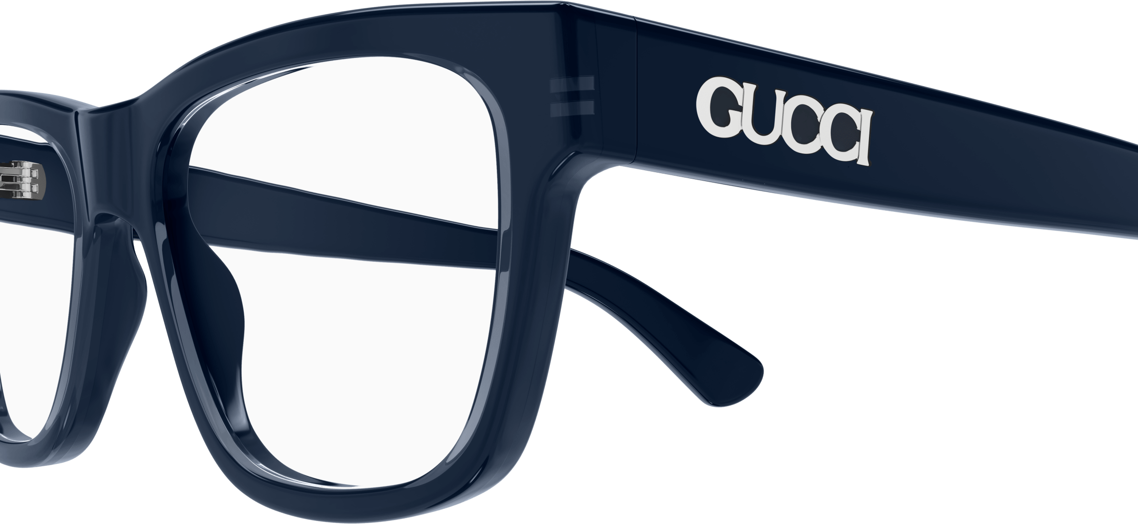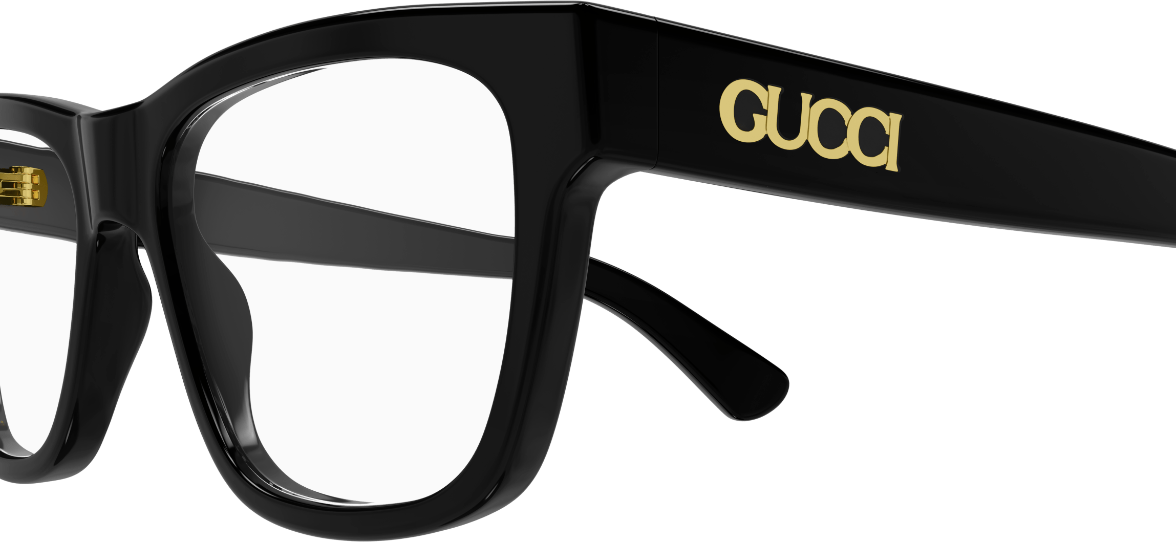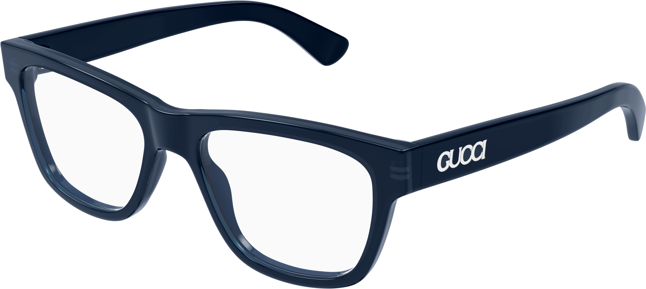 Acetate styles with a bi layered color effect which guarantee a cool look and feel. Rectangular shape. Gucci lettering logo placed under the laque of the construction. Commercial yet cool color palette featuring at least two color combinations.