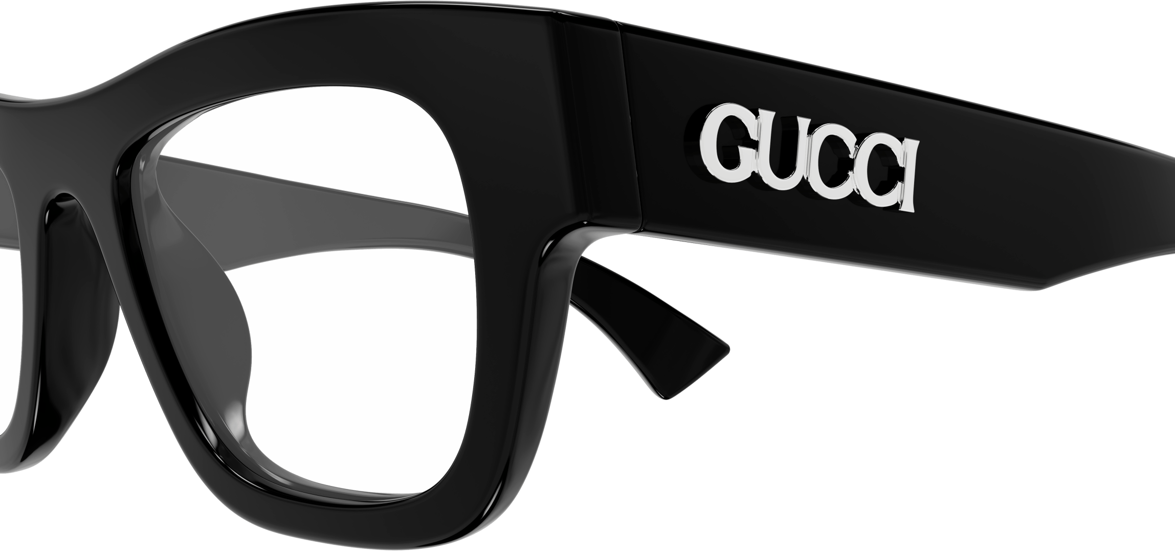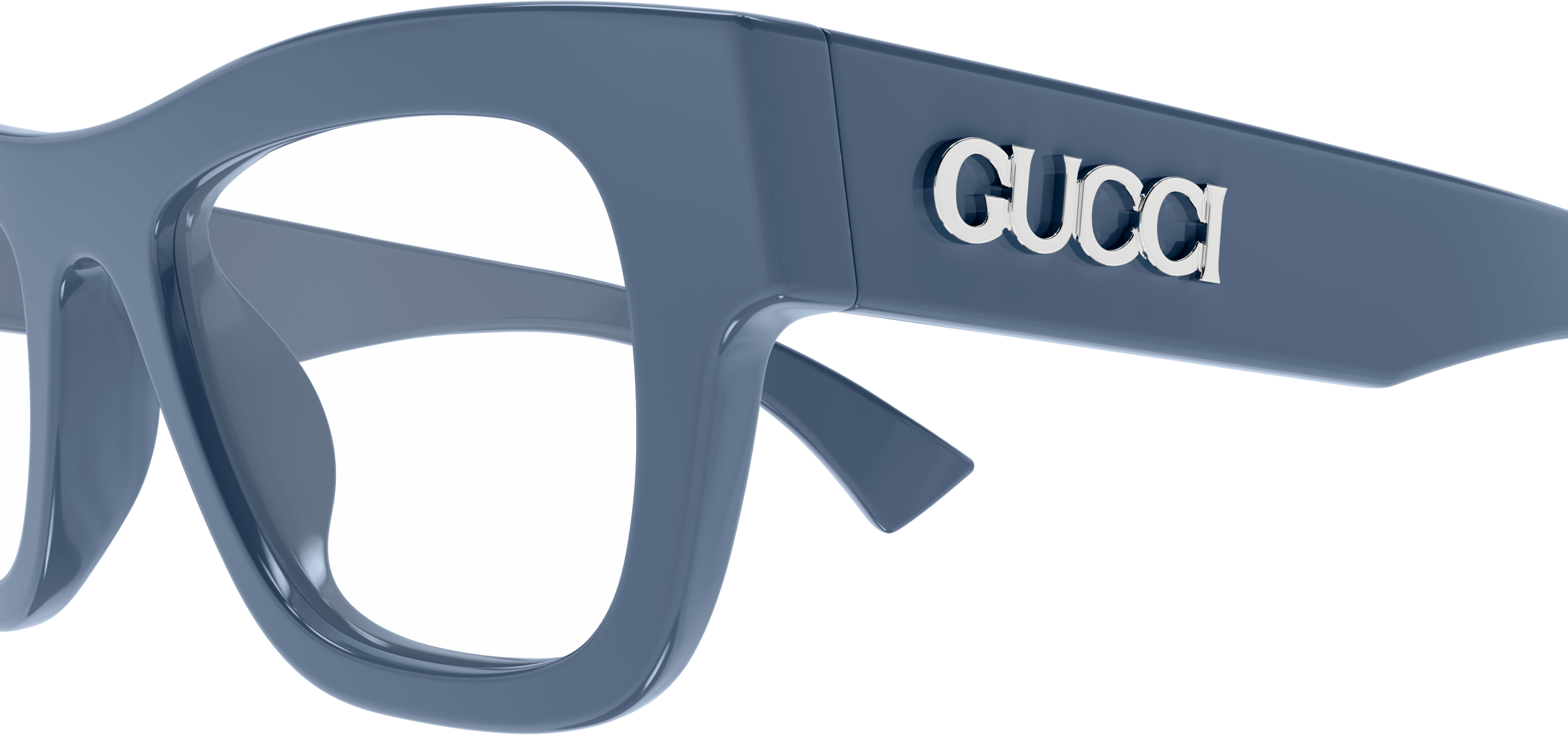 Acetate styles featuring bold lines vivid colors and a pantostopic angle. Squared shape. Tridimensional Gucci lettering logo on the temple. Commercial yet cool masculine color palette.