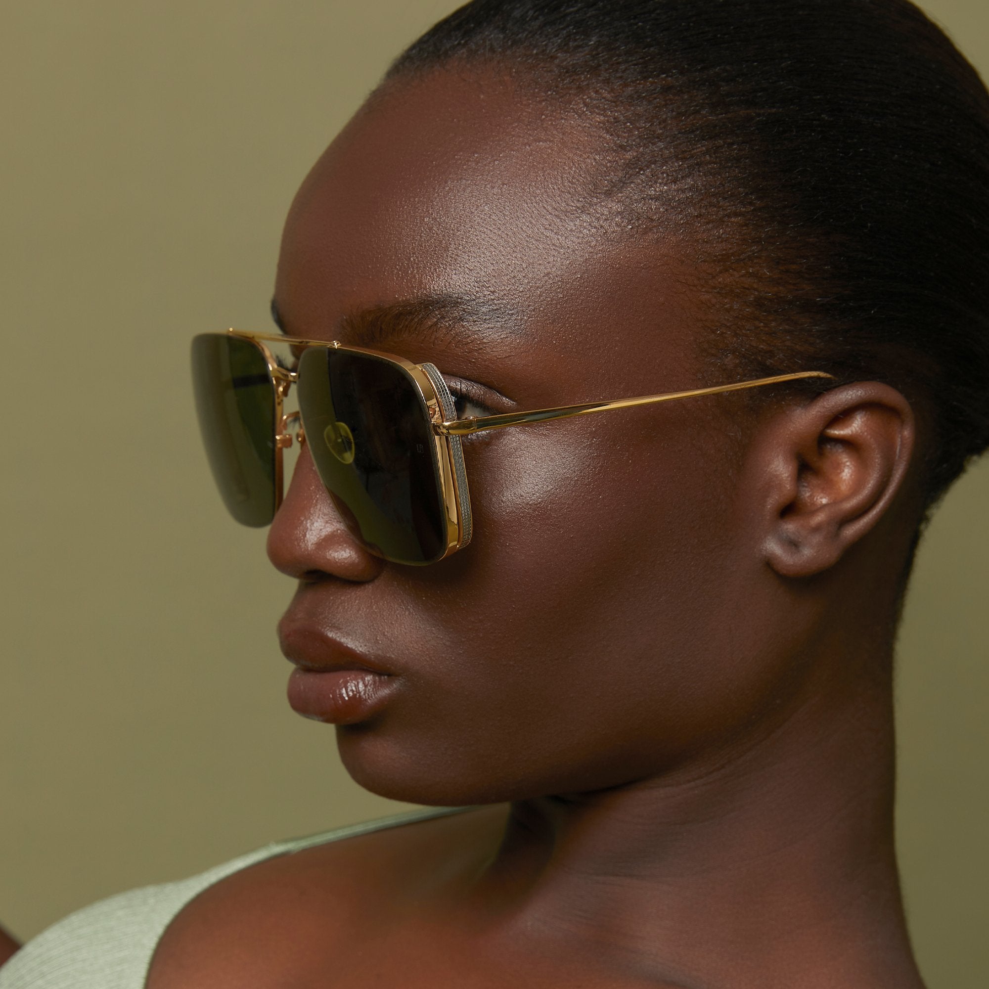 - LFL1122C1SUN - Asher Aviator Sunglasses in Yellow Gold and Green