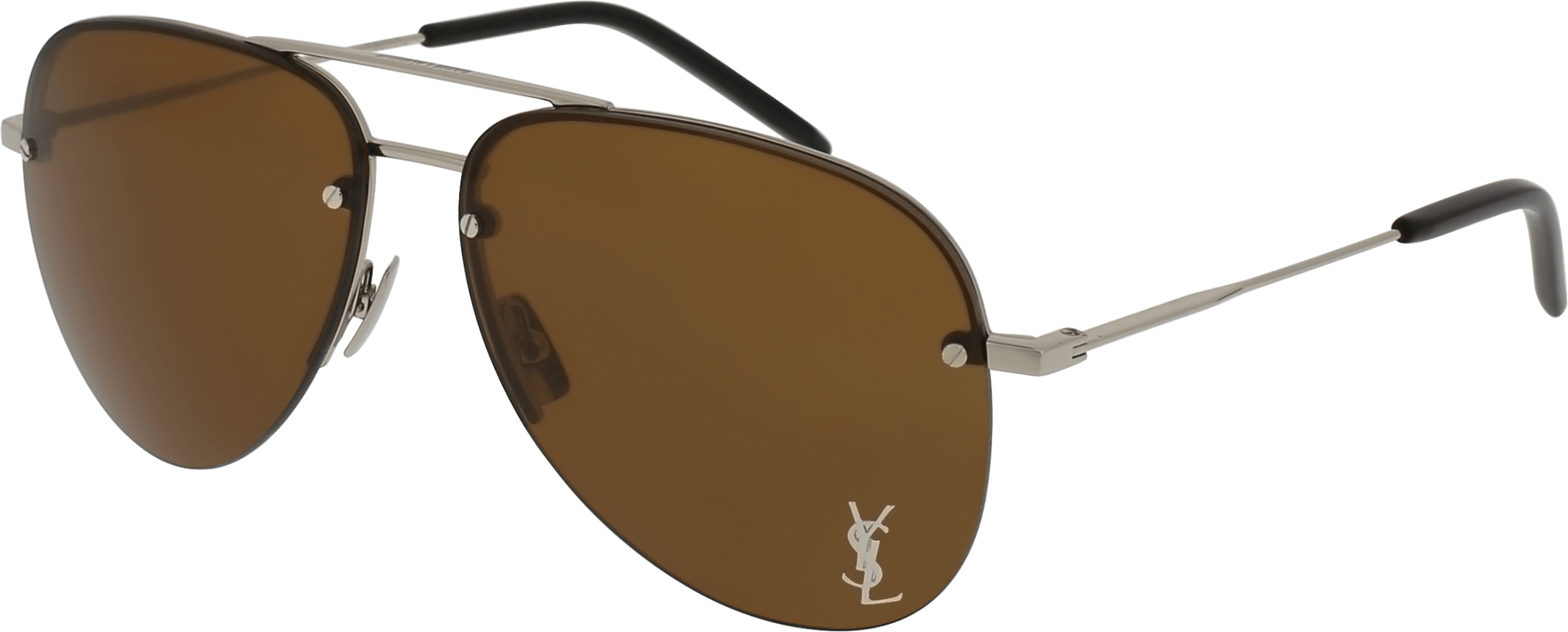 A modern half-rim squared feminine shape, the Saint Laurent SL 312 M sunglasses boast an extremely lightweight metal style that contrasts elegantly. The YSL logo embedded in the lens adds a precious detail, enriching the overall design.
