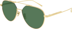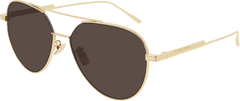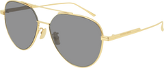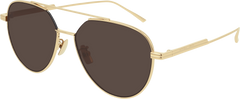 The Bottega Veneta BV1013SK Sunglasses are a must-have accessory for those who appreciate luxury, fashion, and comfort. With their full metal and super light unisex pilot shape, these sunglasses are perfect for adding a touch of sophistication to any outfit. The metal temples are embellished with the new iconic fringed ribbon detail, showcasing the brand's attention to detail and exquisite craftsmanship. The style is available in double size, ensuring a perfect fit for everyone. The Bottega Veneta logo is finely laser engraved on the external side of the temples, adding a subtle yet statement-making touch. The lenses are made with the highest quality materials, with the Bottega Veneta logo Zeiss laser-engraved on both lenses. Choose from the Fondant & Khaki color options, featuring tone-sur-tone matches of shiny metal and flash lenses. Experience the ultimate in luxury and style with the Bottega Veneta BV1013SK Sunglasses.