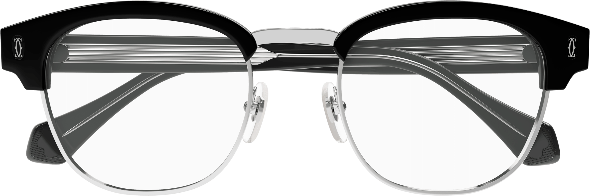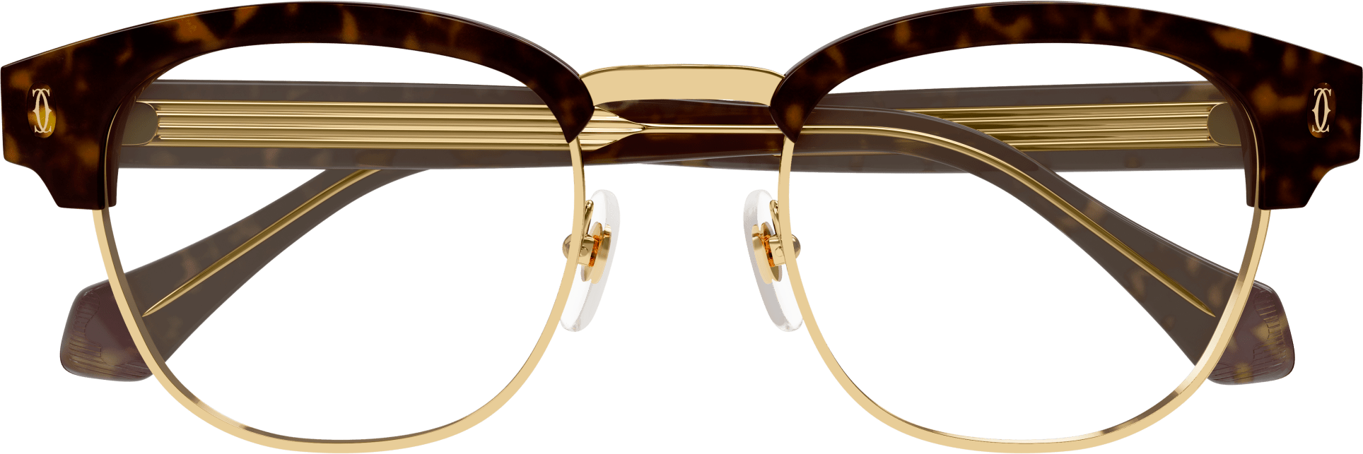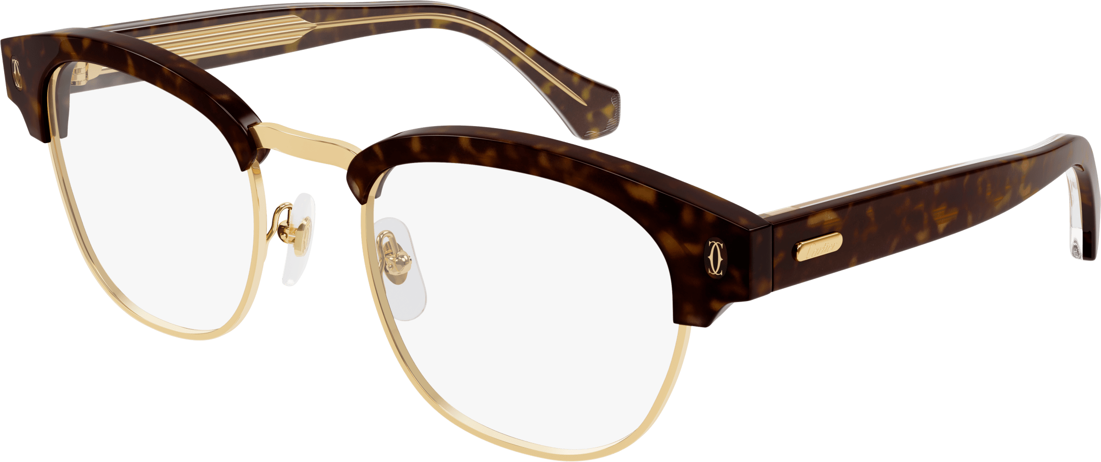The eyeglasses also showcase the iconic double C Dècor photo engraved on the end-piece, showcasing the brand's signature style. The Cartier logo plaque on the temples adds a luxurious touch.