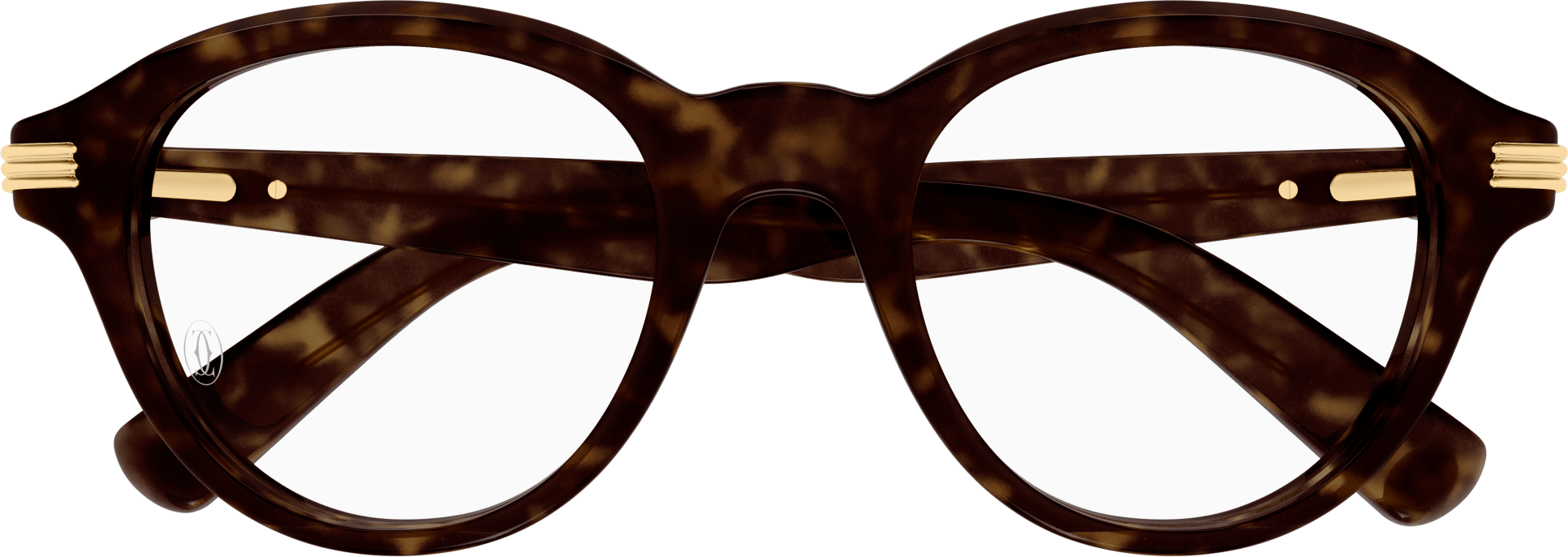 - Cartier double C logo plaque on temple tips inspired by vintage styles