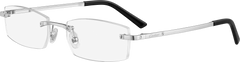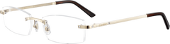 Elevate your style with these luxurious Cartier Optical CT0087O eyeglasses. Crafted with high-rectangular rimless titanium frames, these glasses offer a sleek and sophisticated look inspired by the Santos universe. The elegant and masculine design is enhanced by the identifiable Santos screw décor, which is a symbol of the iconic Santos de Cartier collection.