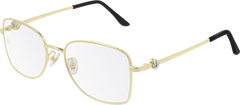 These eyeglasses feature two tones precious finishes in gold and platinum, creating a modern and sophisticated animation. The very thin temples not only add to the sleek design but also showcase the Cartier logo engraved, reflecting the brand's commitment to excellence.