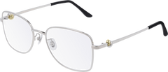 The Classic feminine full rim rectangular shape is timeless and suitable for every occasion. The light temples are embellished with the Trinity ring, a signature design element of the Maison, adding a touch of luxury to the overall look.