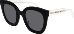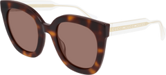 Anima Décor inspired by street styles trend for a young, cool and fresh look. Gucci iconic cat eye shape embellished with transparent temples which highlight the internal wire core with the Gucci logo framed by stars. Classic black and Havana tones alternated with transparent crystal ones.