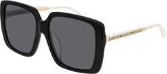 Anima Décor inspired by street styles trend for a young, cool and fresh look. Fashion oversize square acetate shape embellished with transparent temples which highlight the internal wire core with the Gucci logo framed by stars. Classic black and Havana tones alternated with transparent crystal ones.