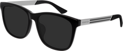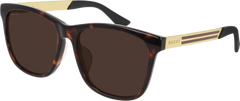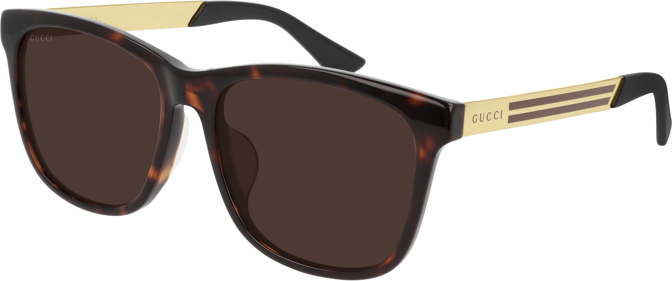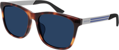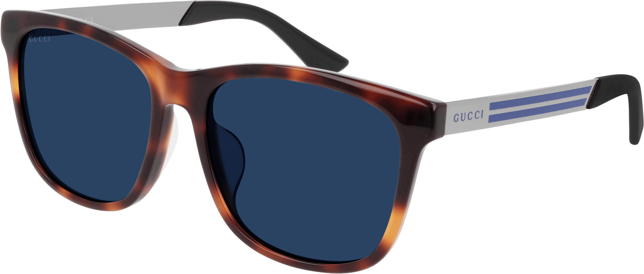 Sporty concept characterized by a classic style and dedicated to the Gucci self confident man. Masculine Club Master shape with front in acetate; temples in metal. Gucci lettering logo and shimmering stripes on temples. Classic masculine color palette with colorful temples a galvanic effect for stripes.