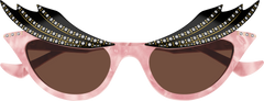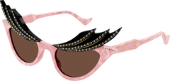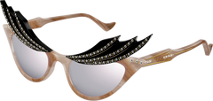 Designed for true divas, these sunglasses boast a feminine silhouette with wings on the front and thin temples adorned with rhinestones and enamel details. The iconic Gucci lettering logo further enhances the temples, adding a touch of sophistication to this already stunning design.