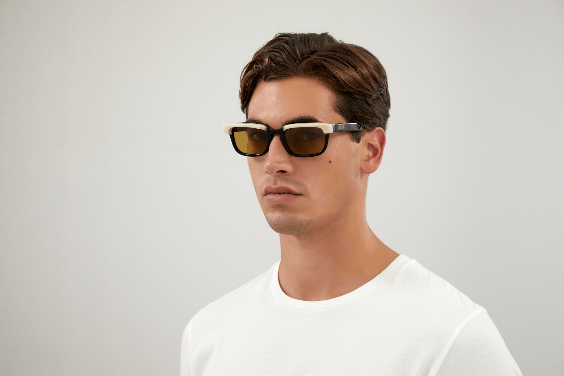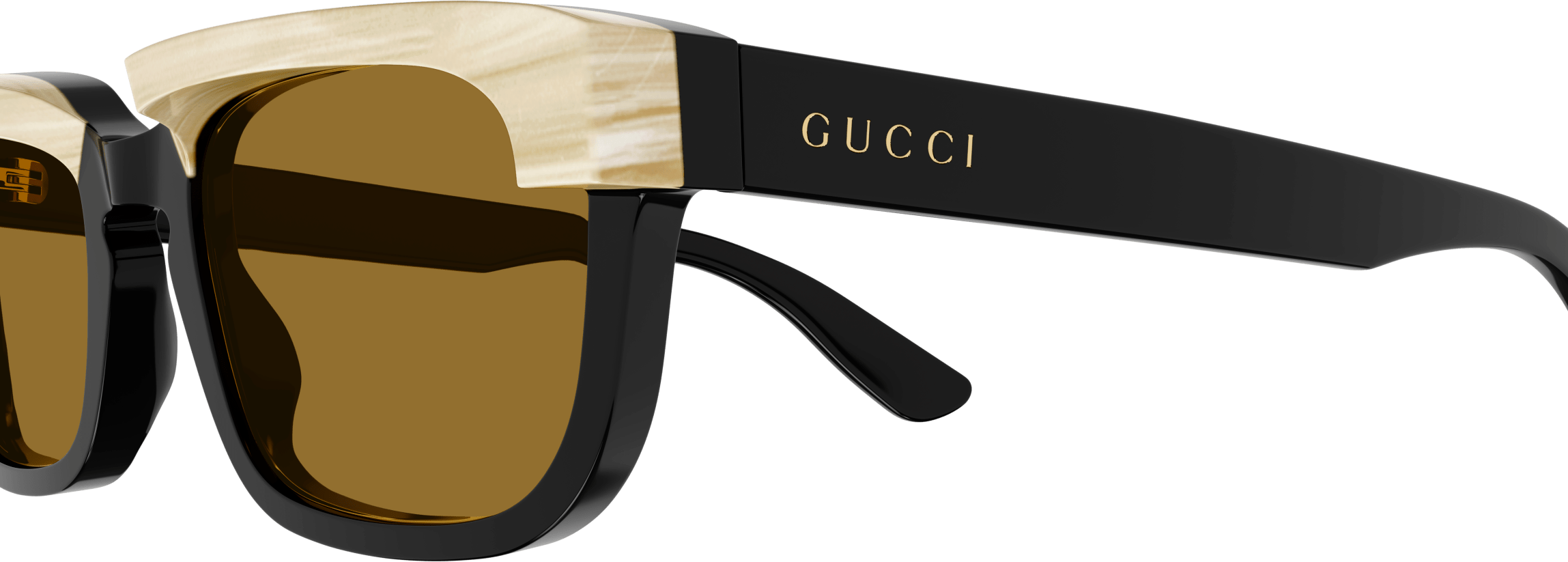 The frame of these sunglasses is made from horn-effect acetate, adding a luxurious touch to the design. The use of precious materials like horn and transparent colors inspired by nature creates a striking contrast with the pop colors, resulting in a never-before-seen design in Gucci Eyewear.
