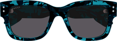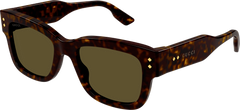 The wayfarer style of these sunglasses is characterized by a bold volume and texture, making them a trendy choice for any fashion-forward individual. The iconic metal rivets add a touch of sophistication and glisten on both the front and temples. The unique havanas further enhance the style, while the distinctive metal wirecore and Gucci lettering logo on both temples add a touch of luxury.