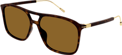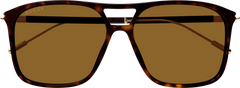 These Gucci sunglasses are the epitome of luxury and fashion. With their pilot shape and metal plaque featuring the iconic Gucci lettering logo, they exude elegance and style. The metal temples with a plastic insert add a modern touch to the overall design.