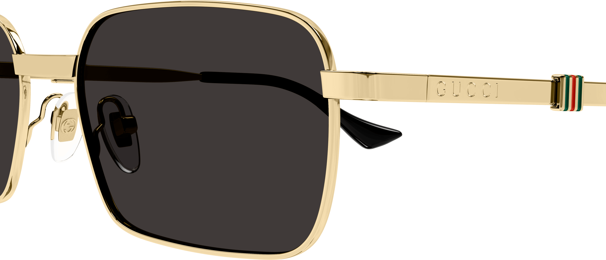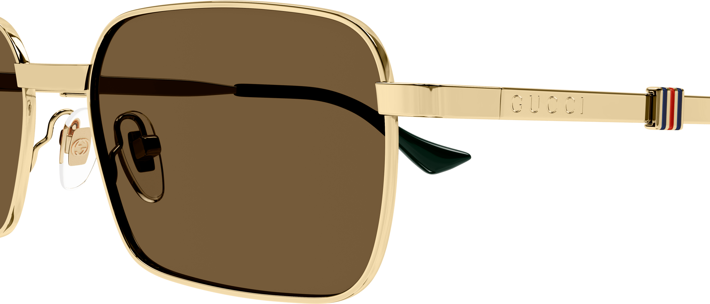 Inspired by the vintage archive, the new Running web concept presents an enameled metal insert placed in the middle of the temple. Rectangular metal shape. Gucci lettering logo lasered on the temple. Shiny color palette paired with solid lenses.