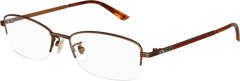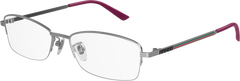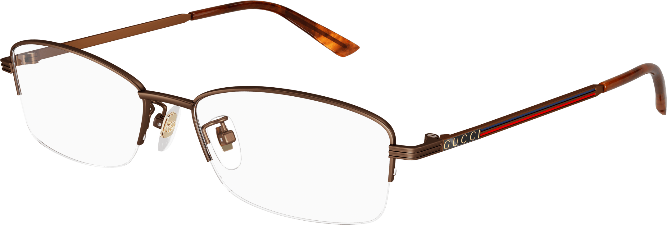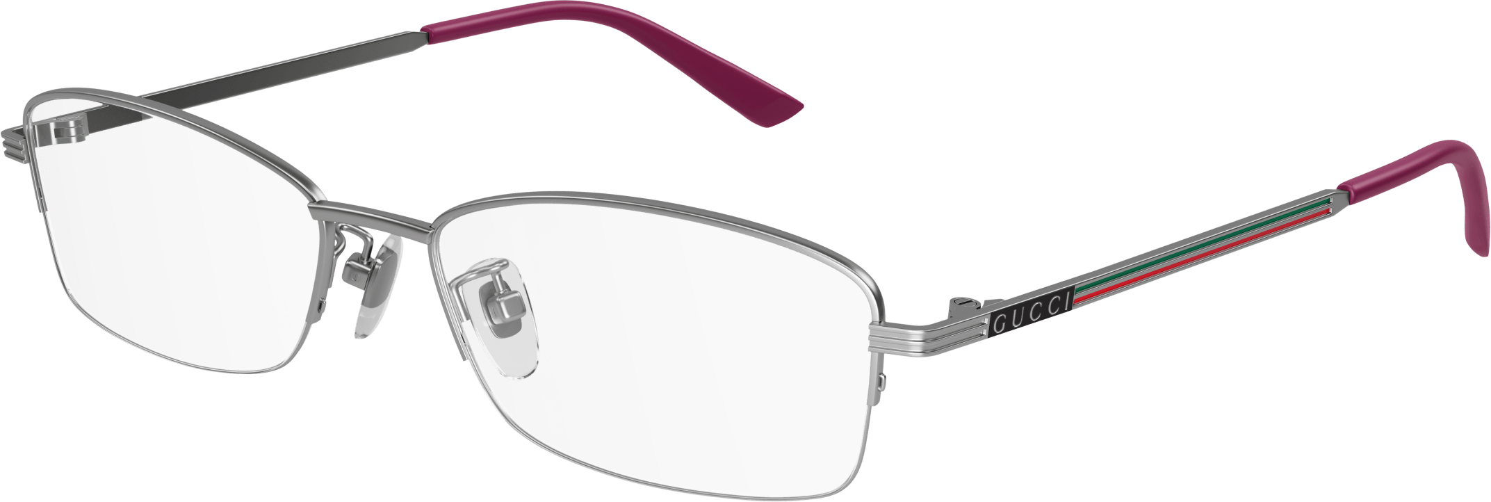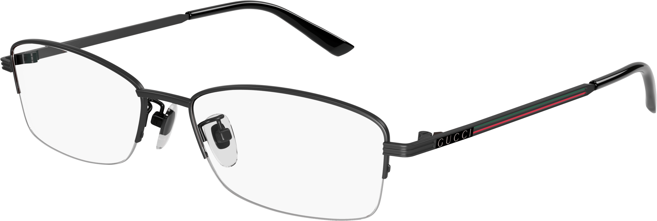 The GG1060OJ model features a sleek rectangular half rim shape, designed for an everyday look. Its iconic Gucci Web representation on the temple adds a touch of sophistication and elegance.