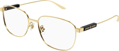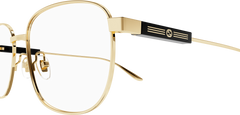 The Gucci Optical GG1312O eyeglasses are the epitome of luxury and fashion. These rectangular-shaped glasses feature a combi construction with a precious appeal, combining metal and plastic elements for a unique and stylish look. The metal temples are adorned with a plastic insert featuring enameled GG Logo & Web details, adding a touch of sophistication to these timeless eyeglasses.