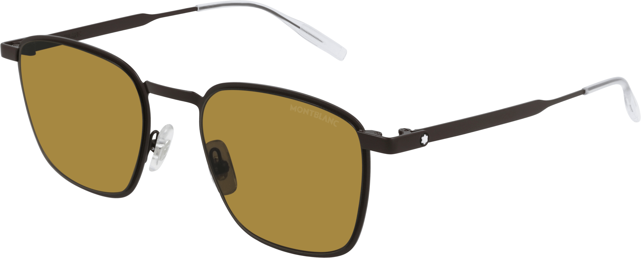 Contemporary soft squared shape, characterized by light metal sheet construction. Real snow cap applied on temples and Montblanc logo lasered left lens. Transparent injected end tip to enhance the lightness of the frame and increase comfort. Classic and refined color palette, inspired by Montblanc’s timeless elegance.