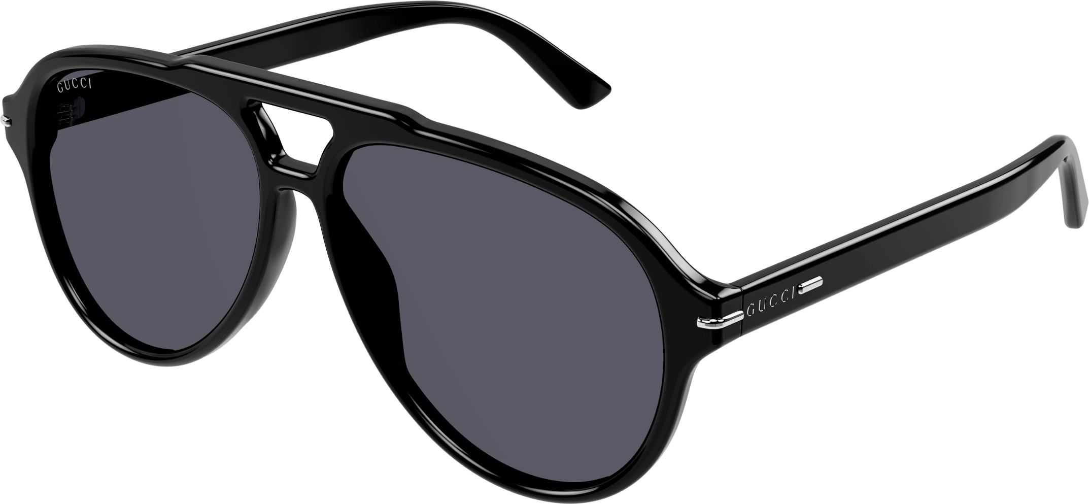 Easy to wear concept, the GG line shines in its simplicity through a bread and butter construction embellised with a line metal detail con the temple. Masculine pilot shape in light acetate. Gucci lettering logo on the temples enriched by a metal line detal on the corner. Masculine dark palette in contrast with the line metal detail and paired with dark solid lenses.