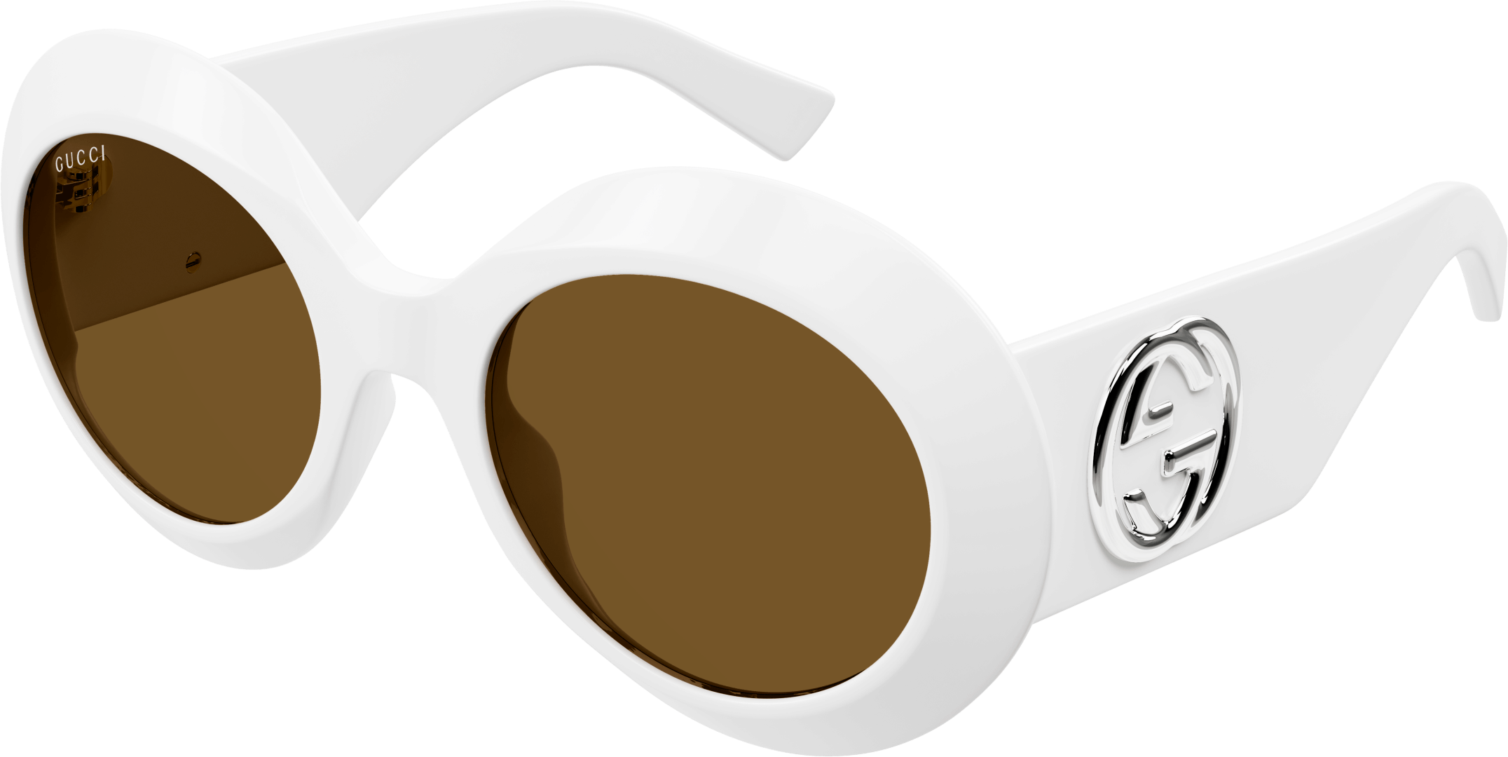 Inspired by the 60’s bold shapes and constructions. Rounded bold shape. Gucci interlocking logo on the bold temple. Commercial color palette.