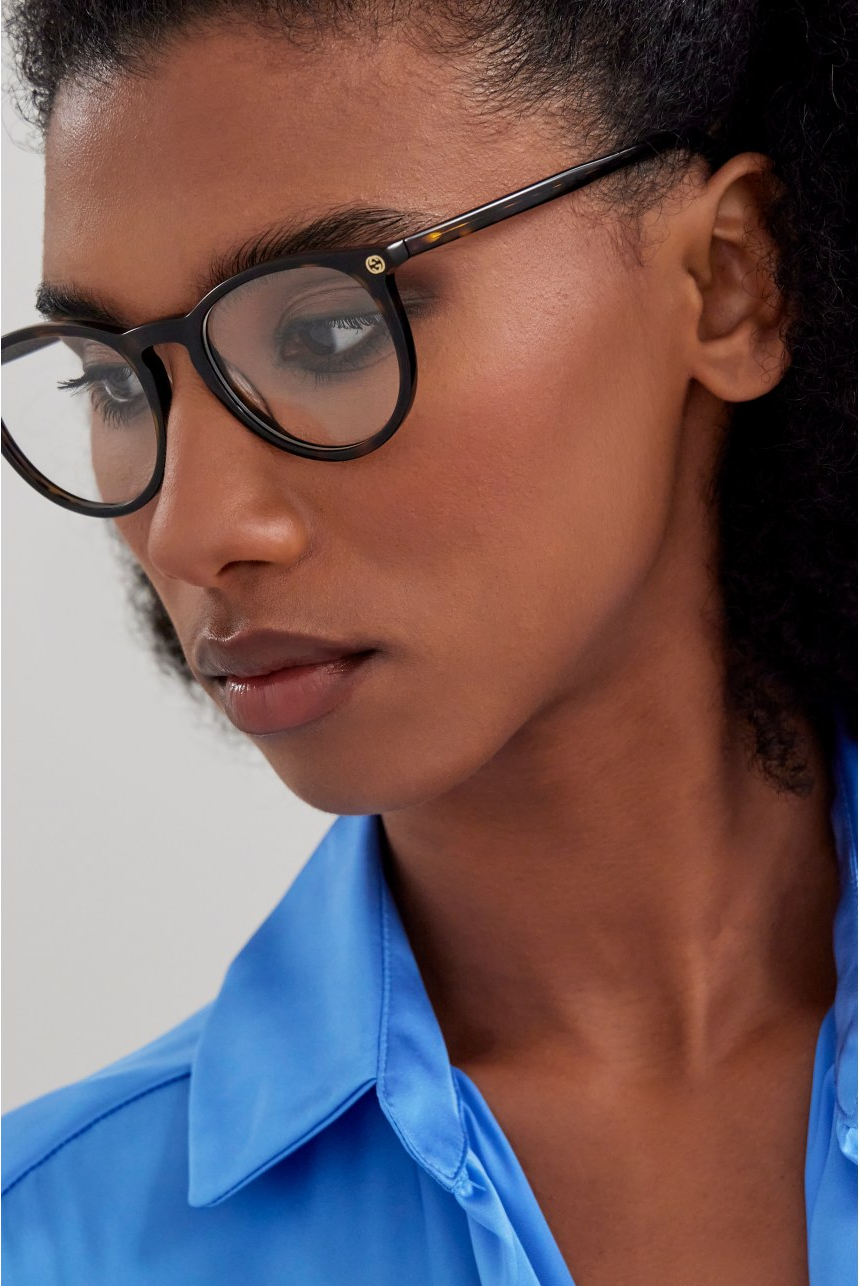 Design Elements: With unique hinges and exquisite detailing like the GG interlocking metal sticker logos, these glasses are a statement of luxury and exclusivity.