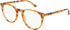 Discover the Gucci Optical GG0027O: Where sophistication meets innovation. These glasses redefine elegance with a trendy phantos shape, enhanced by the iconic GG interlocking metal sticker logos on the front, exuding a youthful charm.