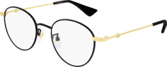 Stand out with the unique rounded optical metal shapes featuring a subtle design, tiny GG Interlocking logo on temples, and Bumble Bee detailing on the end tip. Crafted in classical gold, black, and ruthenium color palette for timeless elegance.