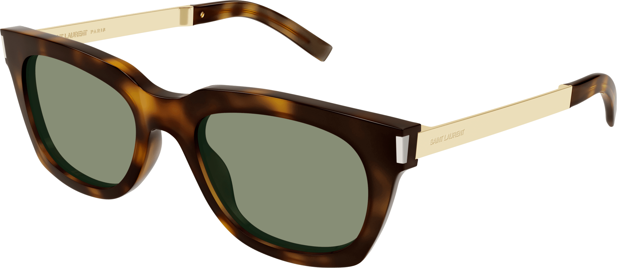 A peculiar metal style with the lens cut following the shape of the metal outline. The double metal bridge and unique temple enriched by a metal trim at the end of the acetate temple tip create a classic style with a contemporary allure. Logo: “Saint Laurent” laser engraved on the external part of the temple and on the double bridge.