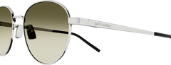 The SL 533 Sunglasses feature a round unisex shape, making them suitable for anyone. They are part of the new Metal Corner Angle family, which showcases full metal styles enriched by iconic corner angle details. Available in the classic Saint Laurent metal color palette, these sunglasses exude elegance and sophistication.